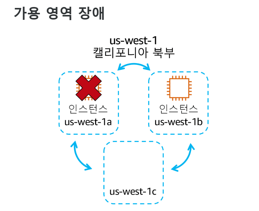 → 한 가용영역의 가상 머신 동작하지 않아도 다른 가용영역의 가상 머신은 동작 → 비즈니스 운영 유지